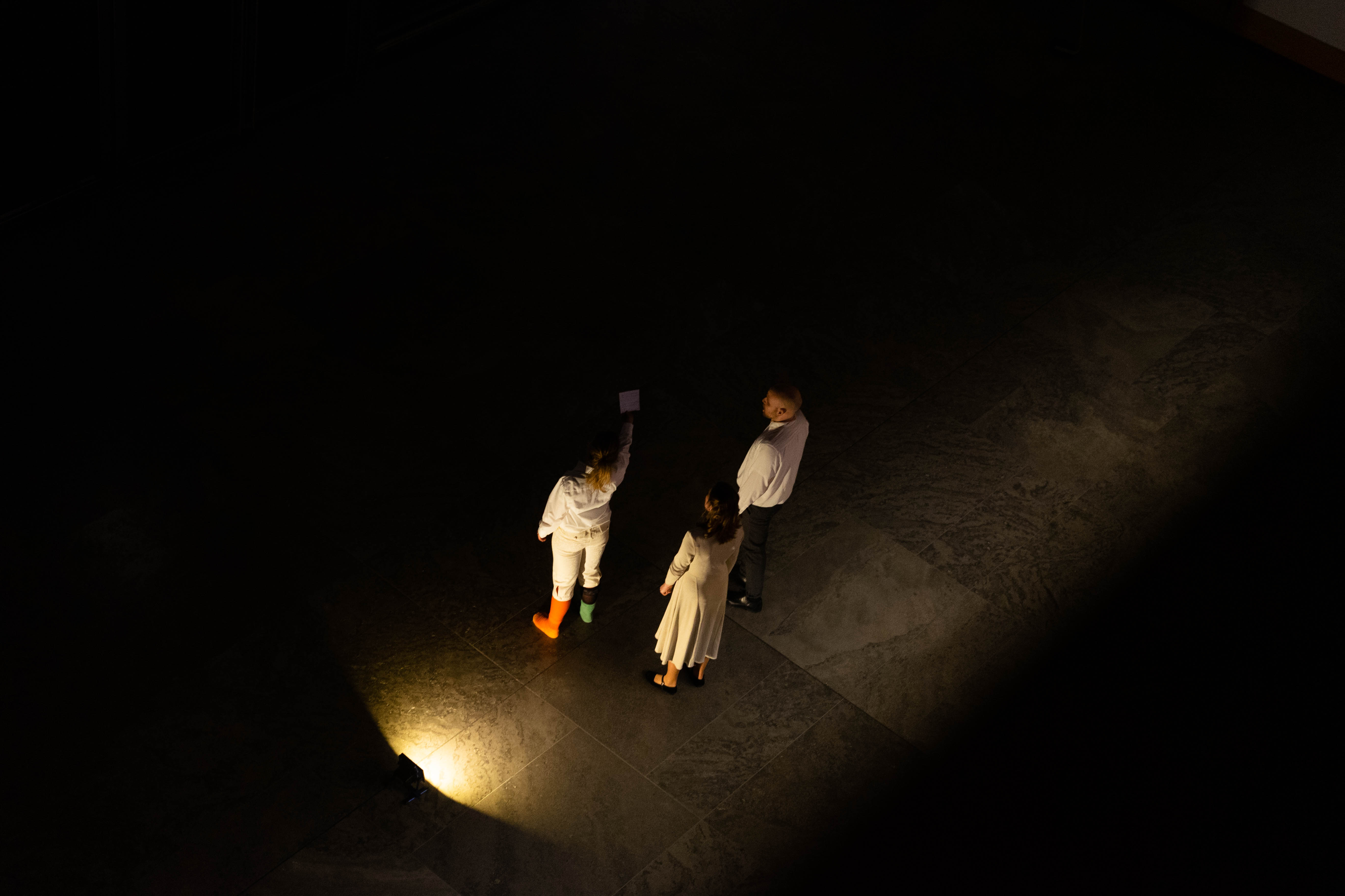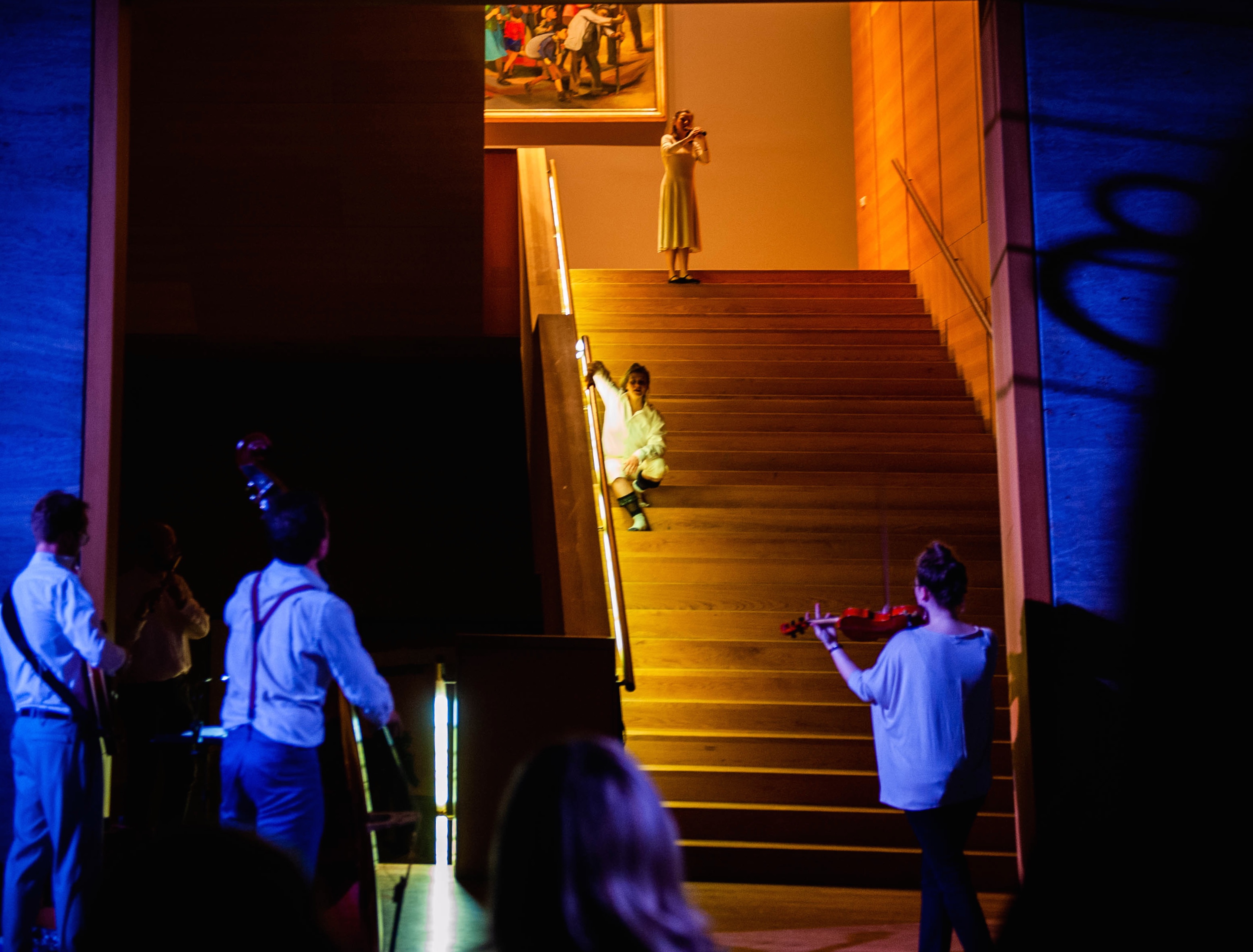 Wir erschließen besondere Architektur mit Klängen verschiedenster Herkunft. Wir untersuchen die Spannungsverhältnisse zwischen Sichtbarkeit und Akustik und passieren Grenzen zwischen Jazz, Klassik, Pop, alter Musik, Tanz und Theater und freier Improvisation. Die Orientierung der Zuhörer wird auf die Probe gestellt.
