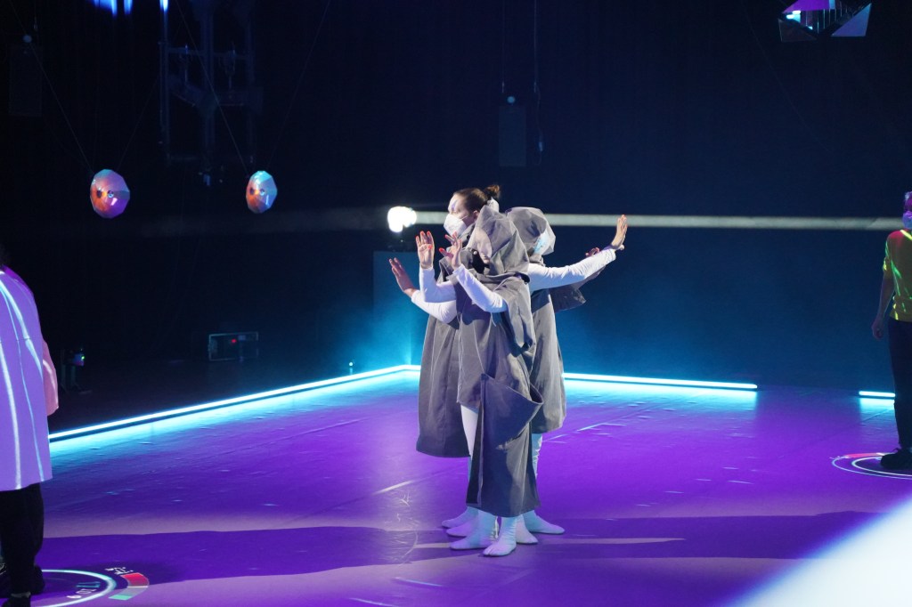 „SystemFailed“ ist ein performatives Experiment der kritischen Auseinandersetzung mit Digitalisierung, bei dem die Rollen zwischen Zuschauenden und Performenden vertauscht sind. Die Zuschauer:innen bewegen sich im Bühnenraum, werden zu Akteur:innen des Spiels. Angeleitet werden sie dabei von den drei Performerinnen Mad Kate, Milena Gürtler und Juliane Torhorst, überwacht von einem selbst entwickelten KI-System, das Bewegungen trackt und Verhalten Einzelner vorhersagt, automatisch bewertet sowie sichtbar und unsichtbar über Licht und Projektionen mit den am Spiel Teilnehmenden interagiert. Für sie gilt, nicht nur zu partizipieren, sondern auch im Raum zu interagieren, für sich allein oder in temporären Gemeinschaften, die spontan oder geplant gebildet werden können.